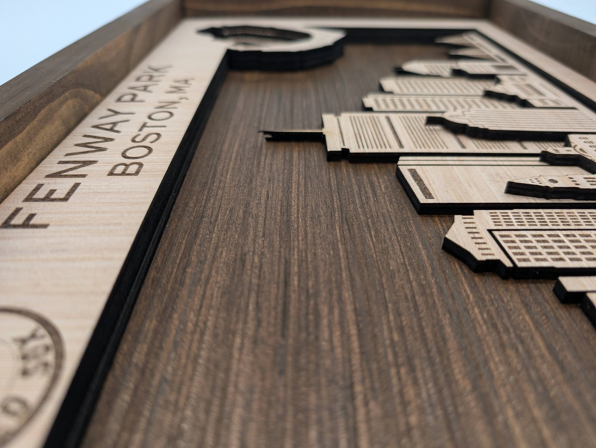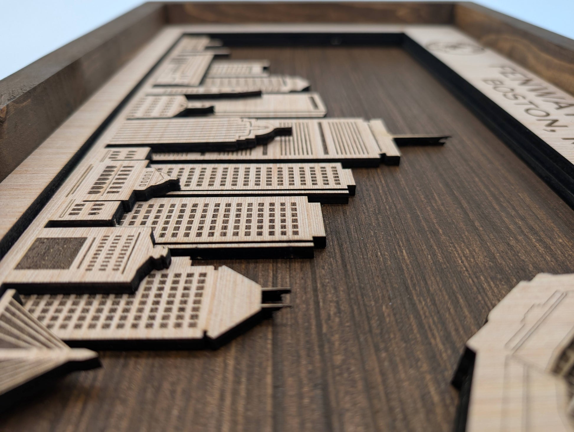 This handcrafted 3D layered wood art captures the iconic Fenway Park with remarkable detail and depth. Each piece is made from solid wood and assembled by hand, creating a striking dimensional effect that brings the legendary Boston baseball venue to life. The natural wood grain adds warmth and authenticity to this unique wall decor. Perfect for devoted Red Sox fans. A sophisticated statement piece that celebrates one of professional baseball's most storied stadiums.