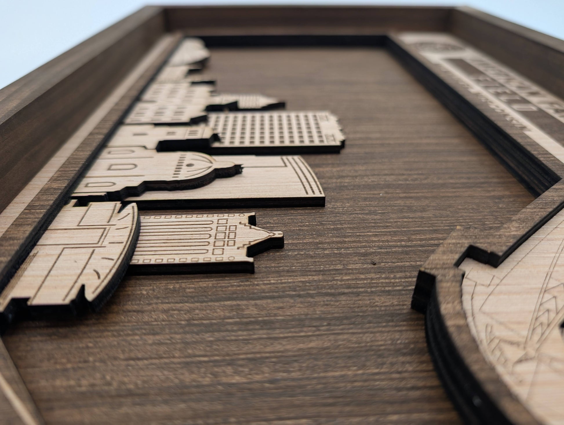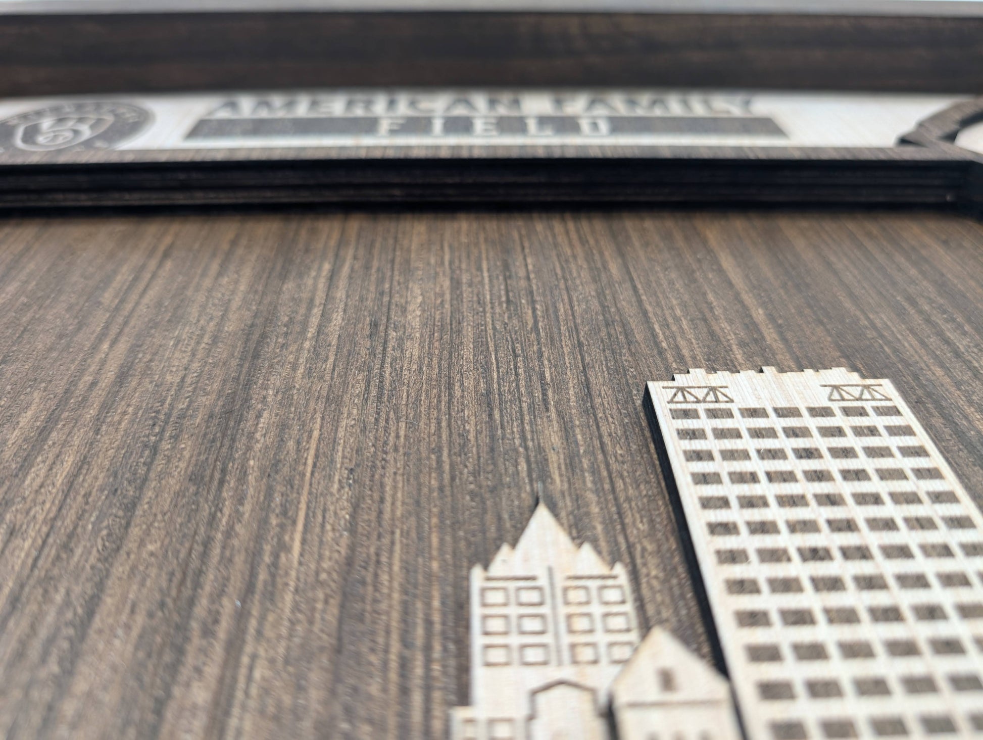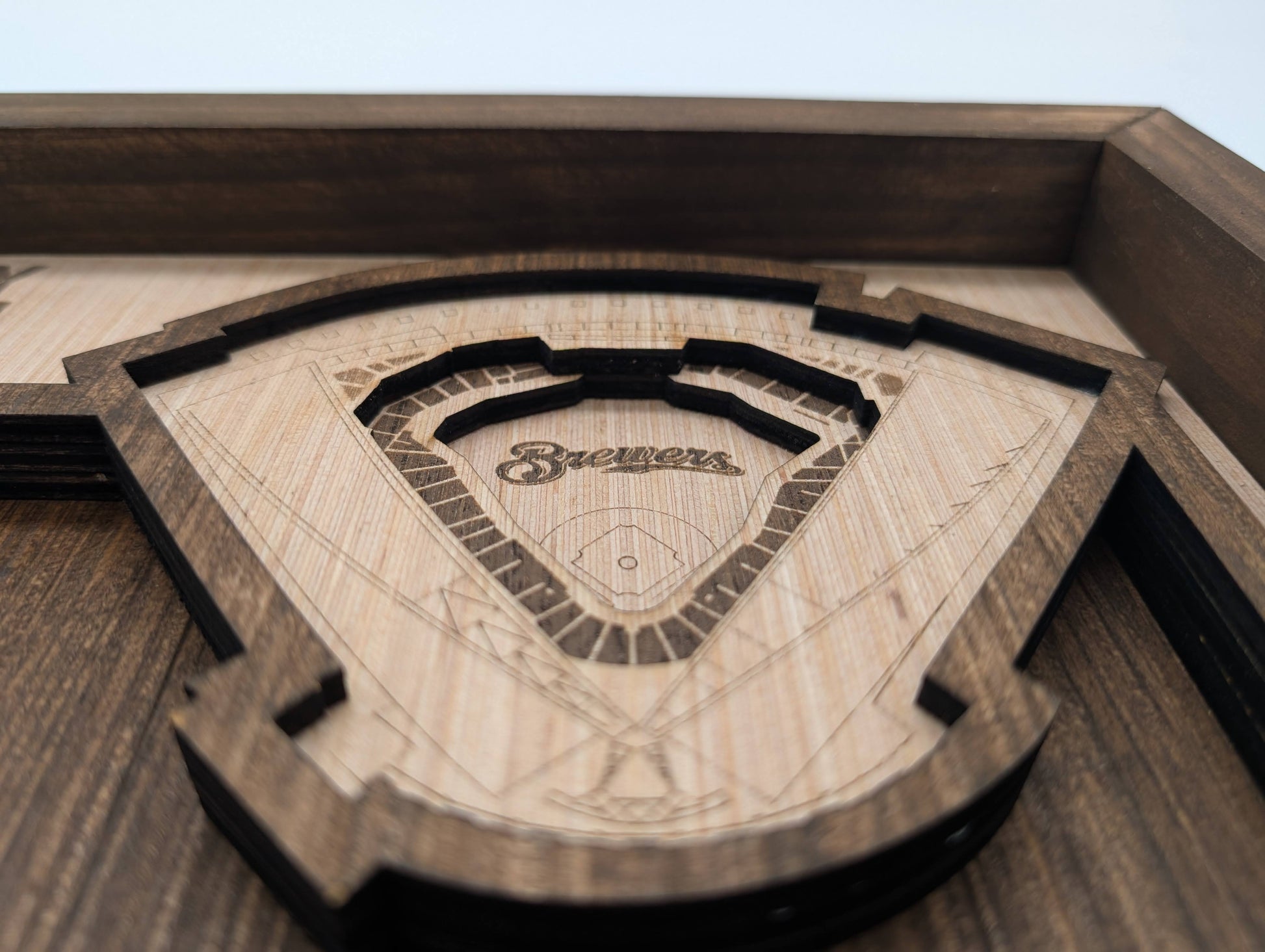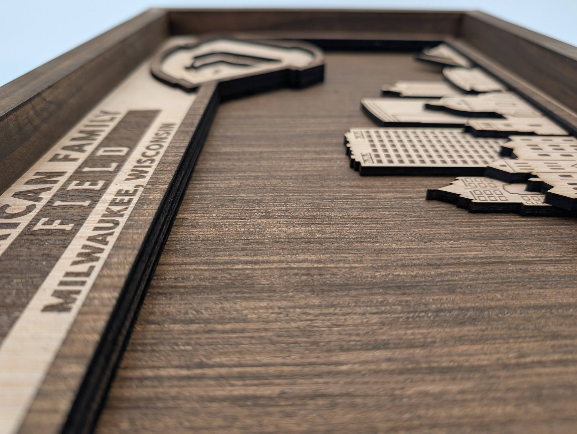 This handcrafted 3D layered wood art captures the iconic American Family Field with remarkable detail and depth. Each piece is made from solid wood and assembled by hand, creating a striking dimensional effect that brings the legendary Milwaukee baseball venue to life. The natural wood grain adds warmth and authenticity to this unique wall decor. Perfect for devoted Brewers fans. A sophisticated statement piece that celebrates one of professional baseball's most storied stadiums.