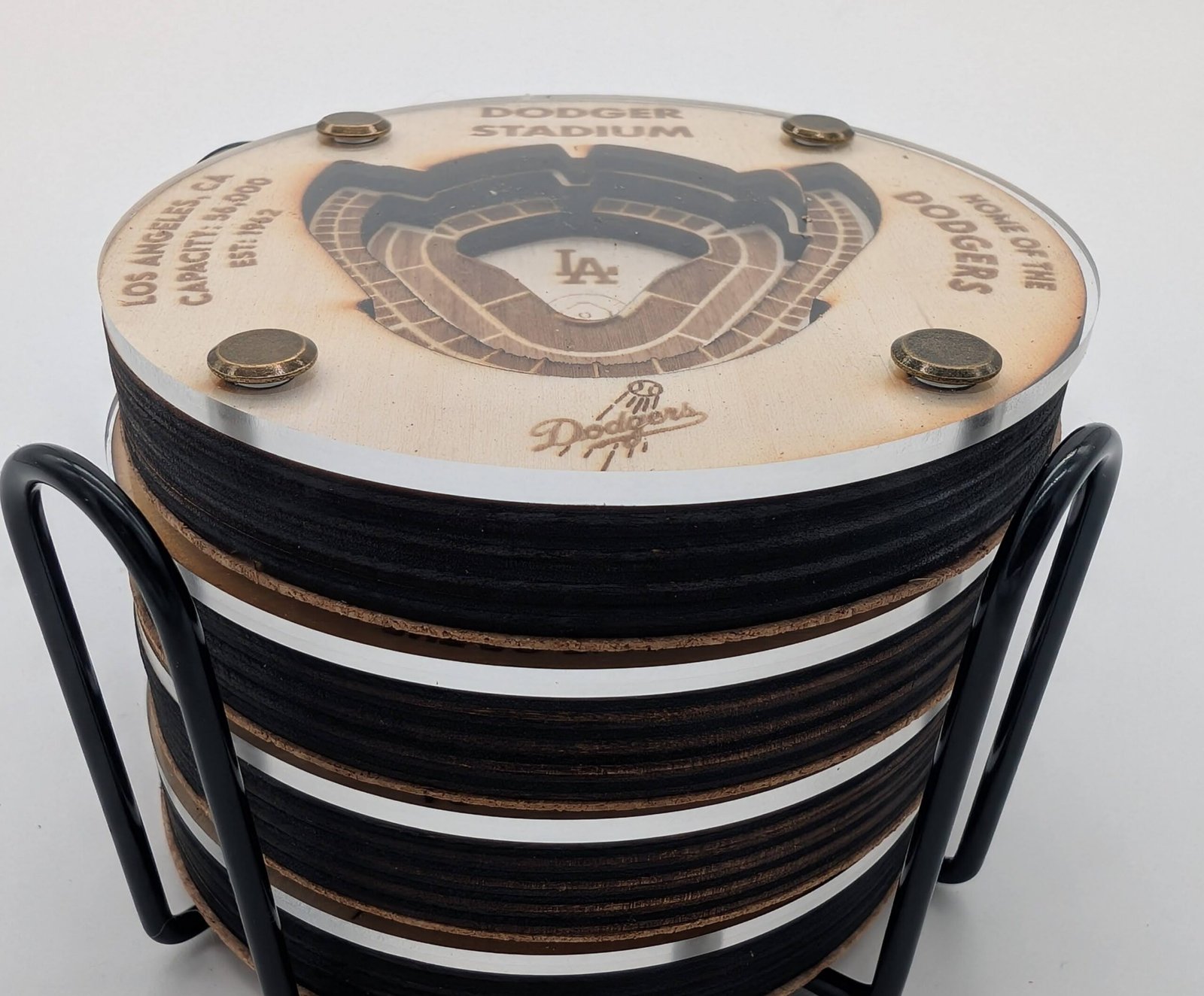 Celebrate the legendary home of Los Angeles Dodgers baseball with this stunning 3D layered coaster set.