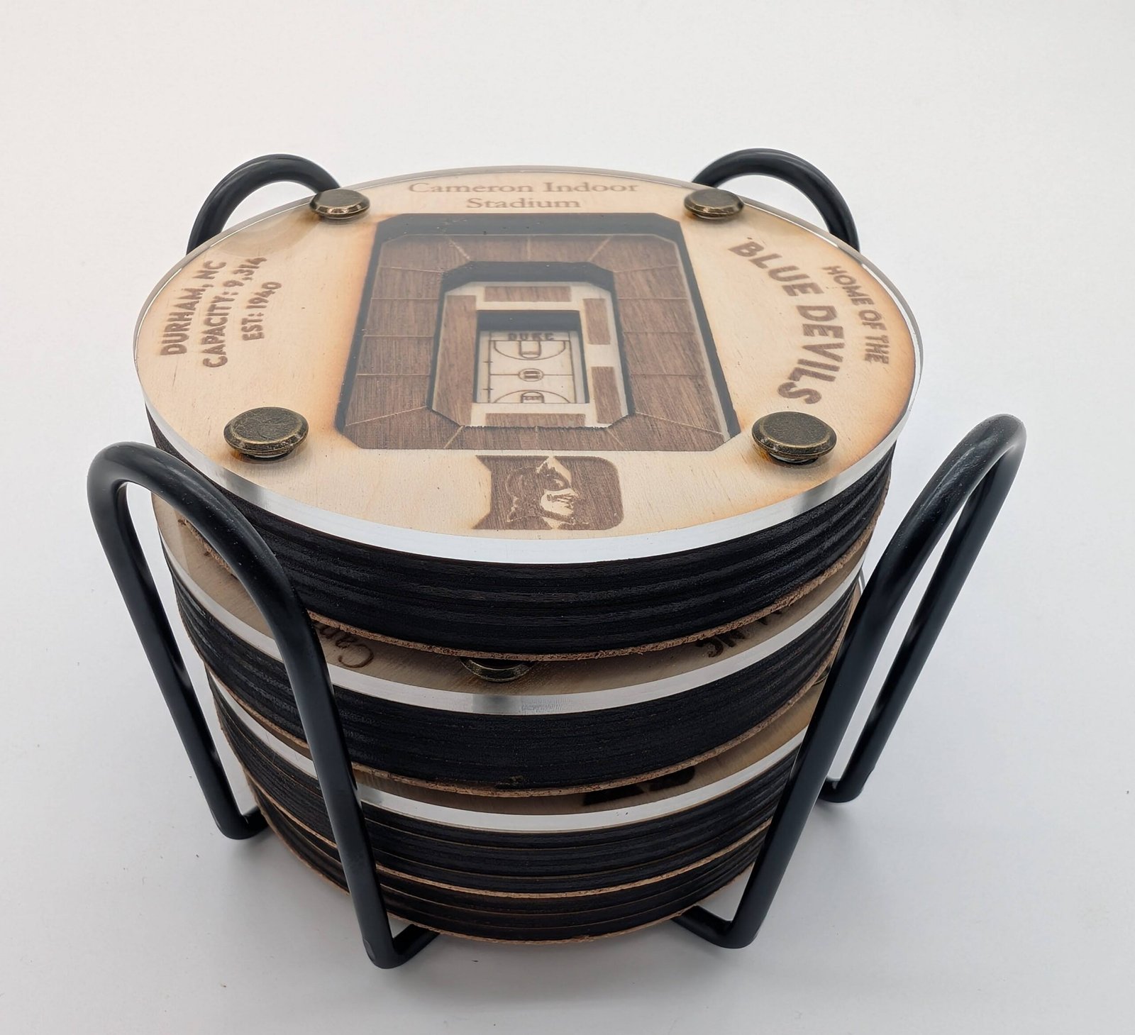 Celebrate the legendary home of Duke Blue Devils basketball with this stunning 3D layered coaster set.