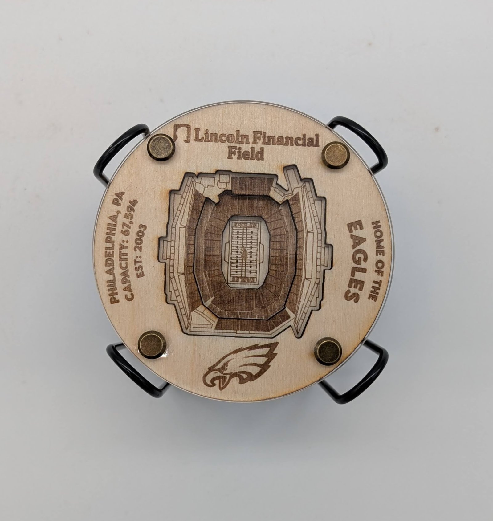 Meticulously handcrafted from solid wood, this dimensional coaster set captures the iconic Lincoln Financial Field with exceptional detail and depth, making it a must-have for any devoted Philly fan.
