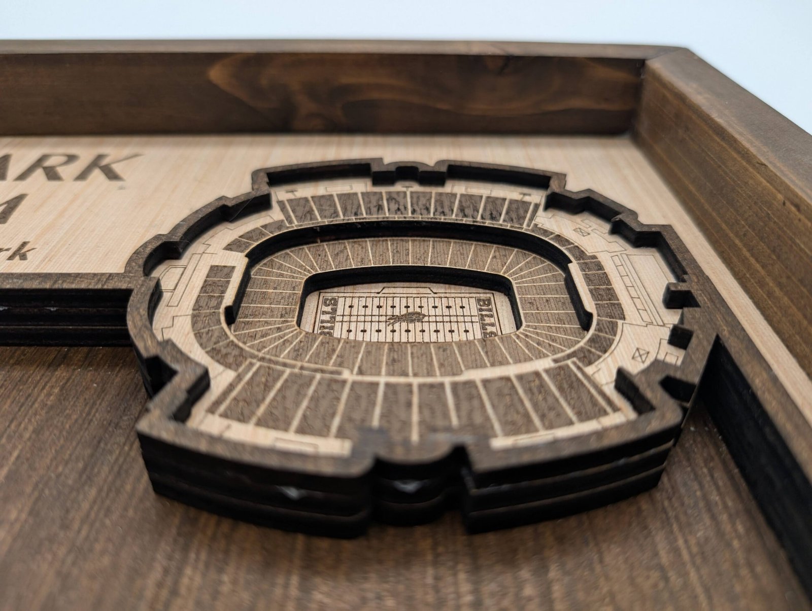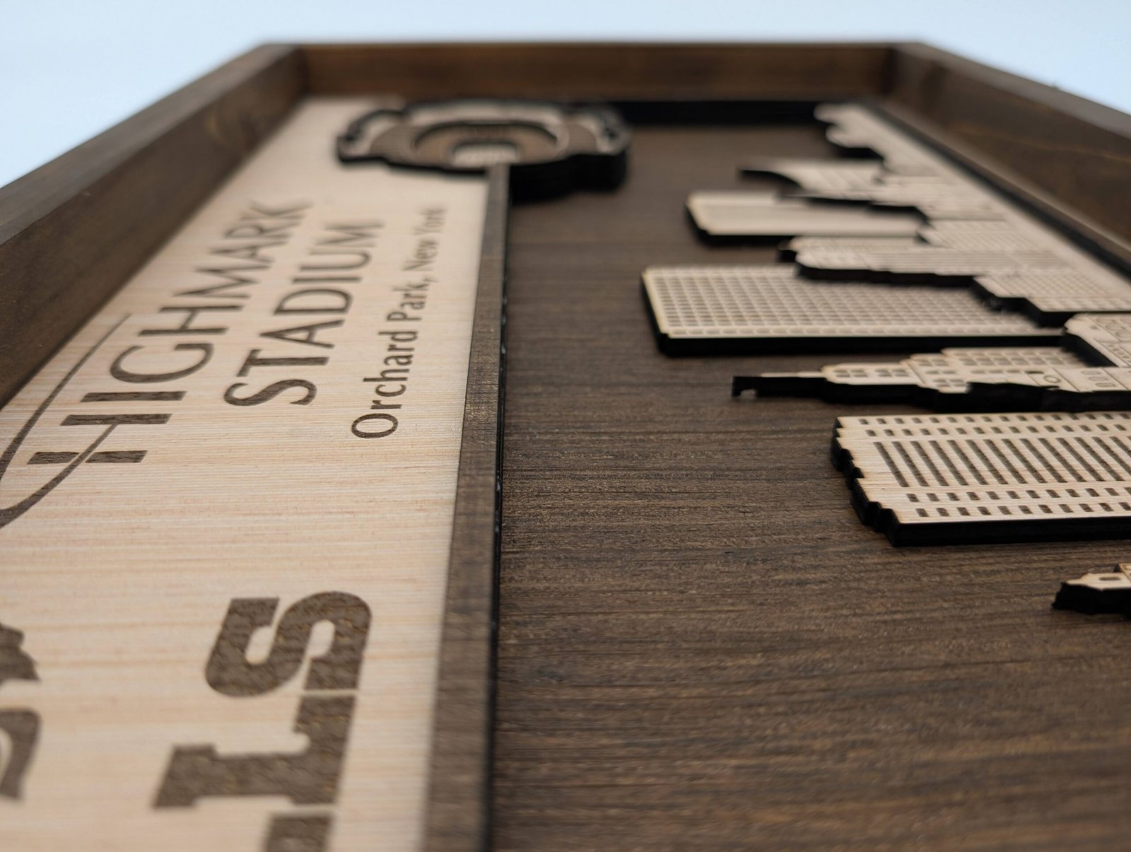 Celebrate the legendary home of Buffalo Bills football with this stunning 3D layered wood art piece.