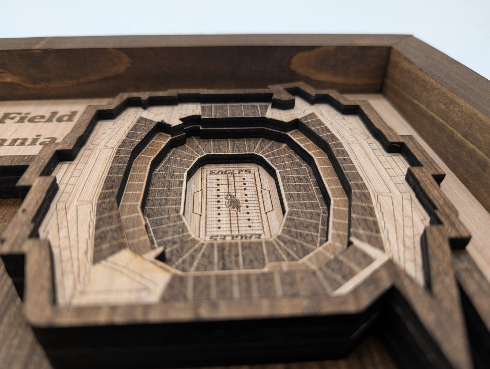 Celebrate the legendary home of Philadelphia Eagles football with this stunning 3D layered wood art piece.