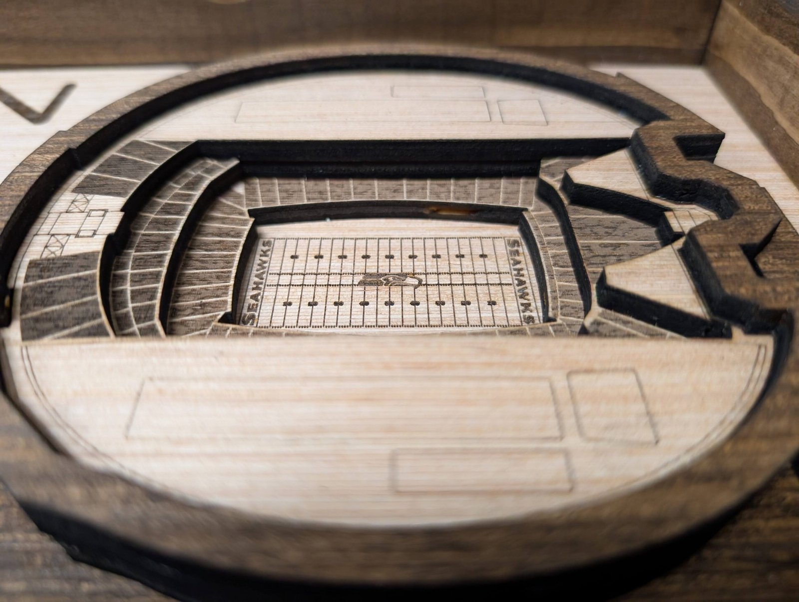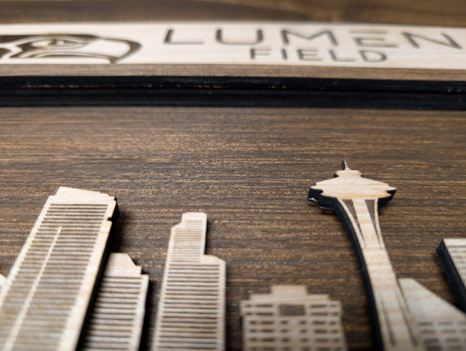 Celebrate the legendary home of Seattle Seahawks football with this stunning 3D layered wood art piece.