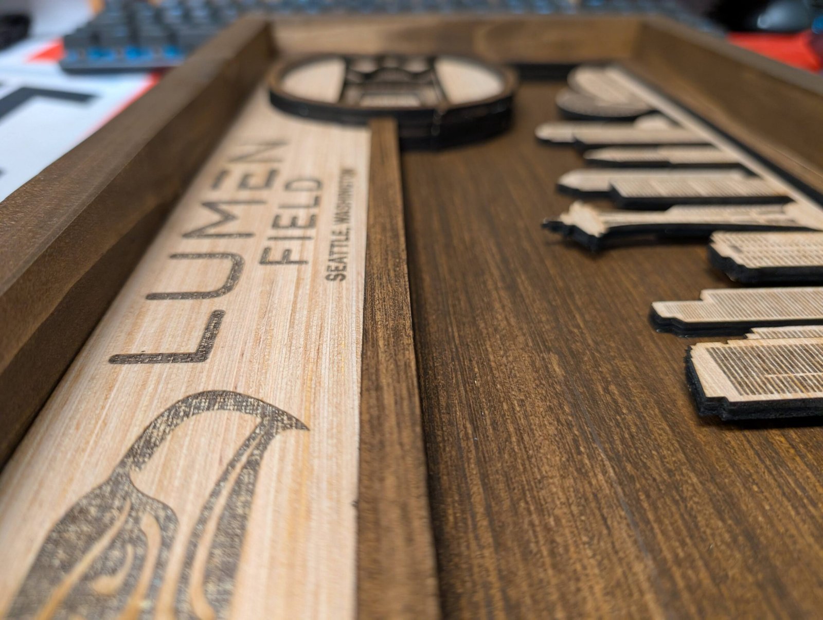 Meticulously handcrafted from solid wood, this dimensional wall sculpture captures Lumen Field with exceptional detail and depth, making it a must-have for any devoted Seattle fan.